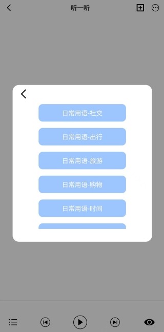 在【学习】模块中,除了基础词库,还整合了“随身听”和“阅读”两大功能。“随身听”支持按“词库”“主题词汇”“实用句子”分类播放,覆盖旅游、购物、点餐、社交等高频场景,助你随时随地沉浸式学习。