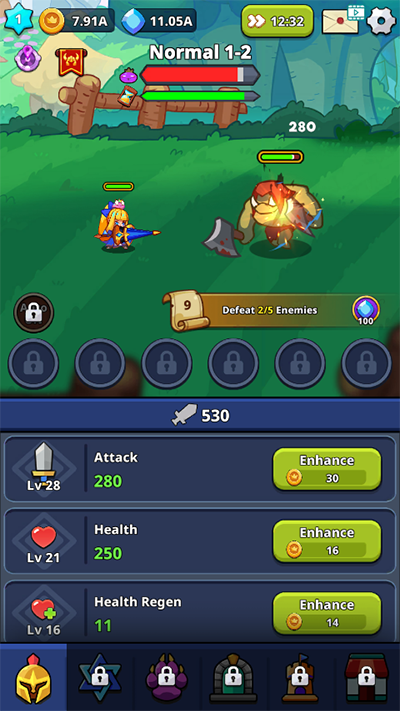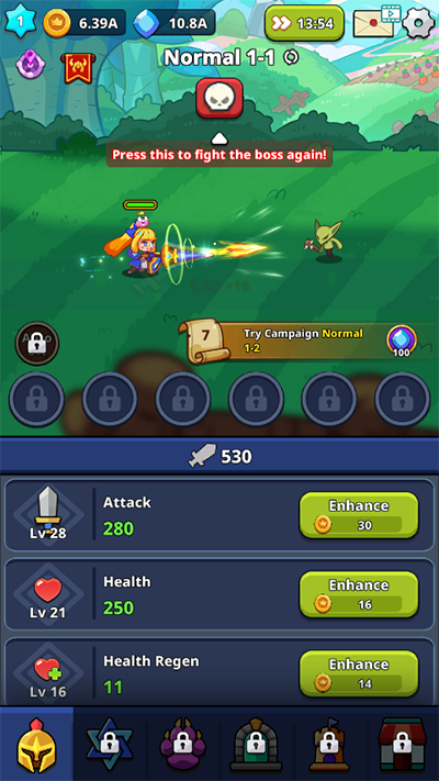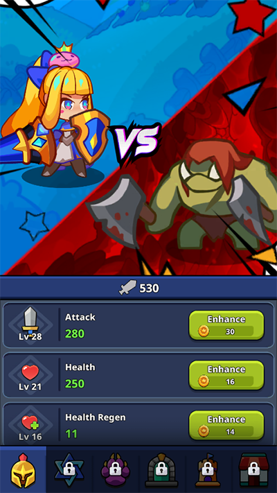 1、新手阶段启动游戏后即可开启自动挂机模式。建议优先点击界面下方的强化按钮,消耗金币提升基础攻击力,稳步增强角色战力,为后续挑战打下坚实基础。