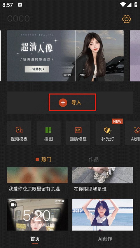 1、打开可可修图App,点击“导入”按钮,将需要编辑的照片上传至软件中。