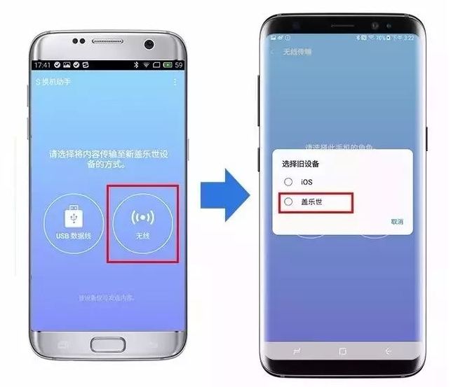 1、下载并安装三星S换机助手,打开后根据提示选择旧手机的操作系统(Android或iOS)及传输方式。推荐使用无线传输。部分三星机型(如Galaxy S7/S8)已预装该功能,可直接通过【设置】-【云和账户】-【助手】进入。