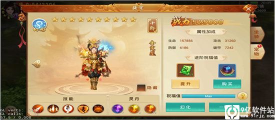 坐骑与宠物最高可进阶至10阶,每提升一阶所需祝福值递增。除进阶丹外,还可使用祝福卡(每张增加150点祝福值)加速进阶进程。