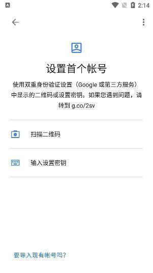 - 选择添加账户方式:【扫描二维码】或【输入设置密钥】。
