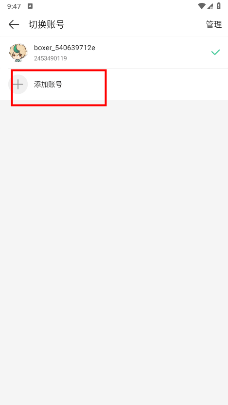 点击“添加账号”,根据提示选择手机号登录或已有账号登录方式完成切换。