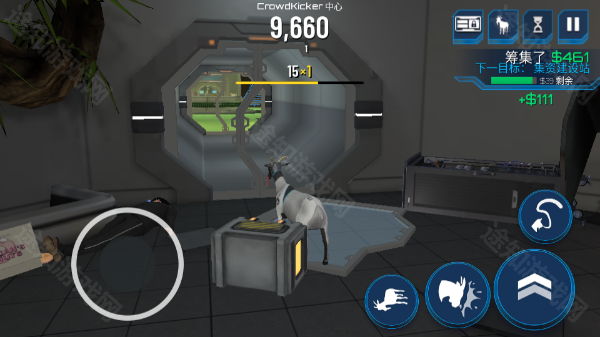 2. 进入游戏后,操控你的太空山羊在场景中肆意破坏,破坏越多,得分越高;