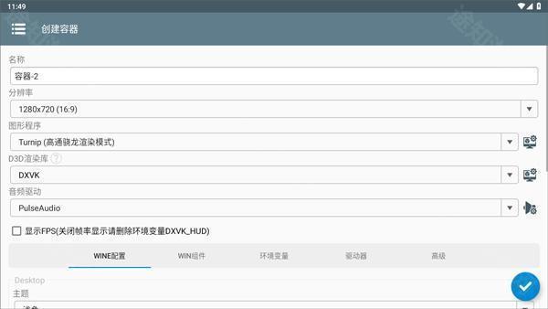 - 根据设备性能选择合适的屏幕分辨率,并设置显存大小(低配手机建议调低以确保流畅运行)。