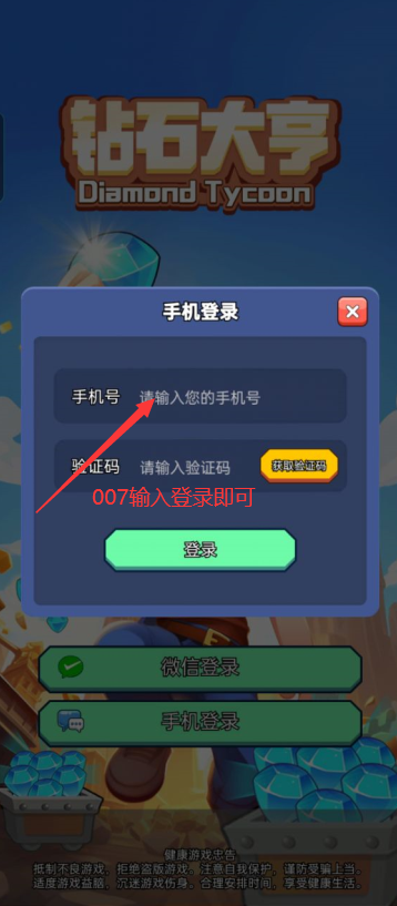 1. 从本页面下载安装《钻石大亨红包版》后,使用手机号码一键登录游戏。