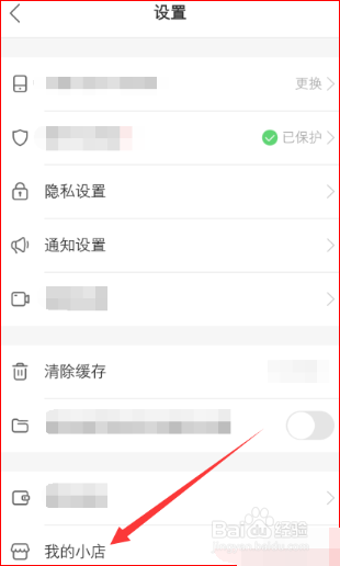 在设置页面中找到并点击“我的小店”选项,进入店铺管理中心。