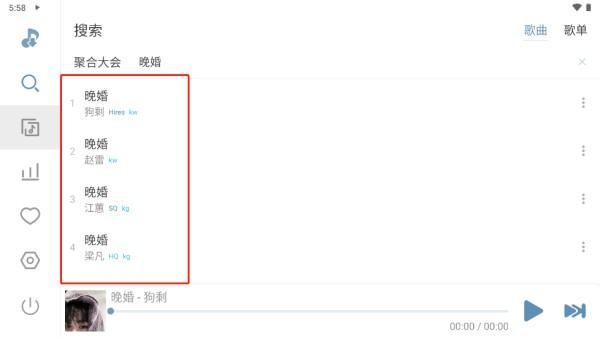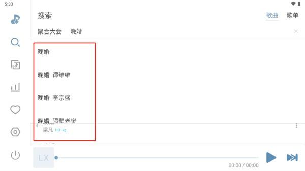 - 点击界面左侧的放大镜图标,在搜索栏中输入歌曲名称或歌手名;
