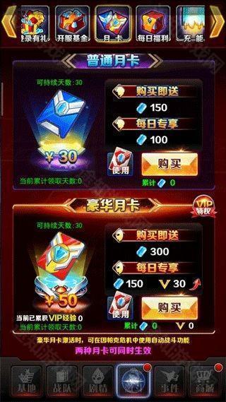 6. 购买豪华月卡或双月卡,配合每日答题获取月卡券,可持续领取光元与VIP经验。