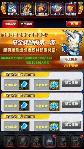 7. 达到VIP3后可购买家园基金或奥特基金,首次投入2000光元可返还9000光元,回本迅速。