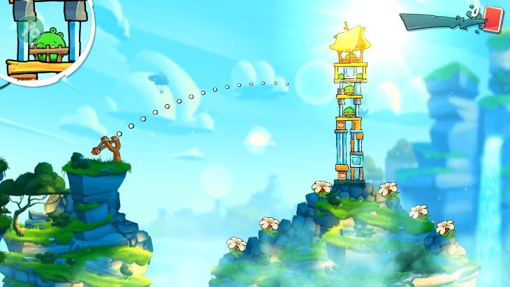 4、拖动小鸟调整发射角度,左上角辅助线会实时显示预估落点轨迹,助你精准打击;
