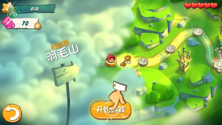 2、进入羽毛山主界面后,点击【开始游戏】按钮进入关卡选择界面;