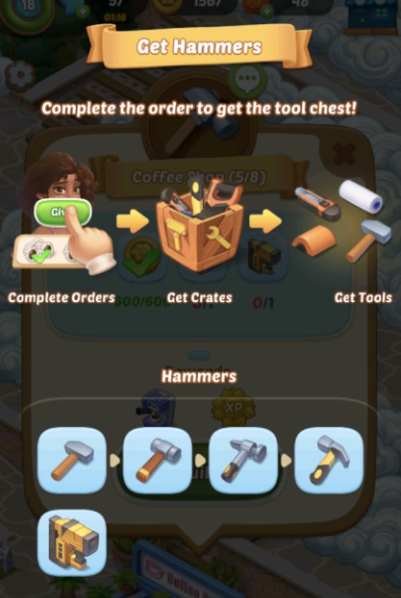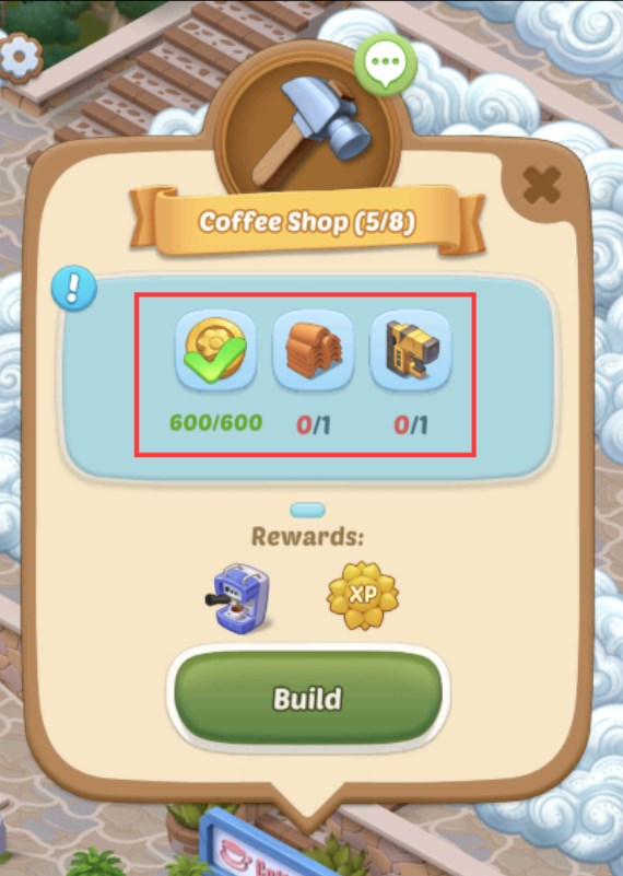当满足所需金币或工具数量后,点击建筑图标即可进入建造界面,自动完成建设。