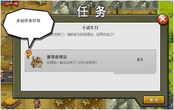 3、掌握修理技能后,任务更新为“小试身手”——清除地图上的全部敌军。