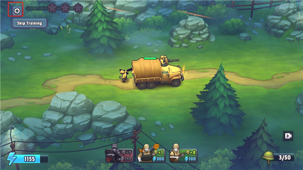 2、进入战斗场景后,根据提示选择单位部署,点击下方兵种按钮即可在战场上放置士兵或载具进行作战。