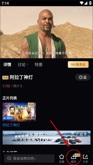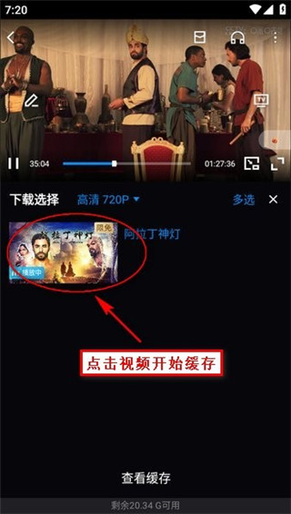 点击播放想要下载的视频,在播放界面右下角找到“缓存”按钮并点击