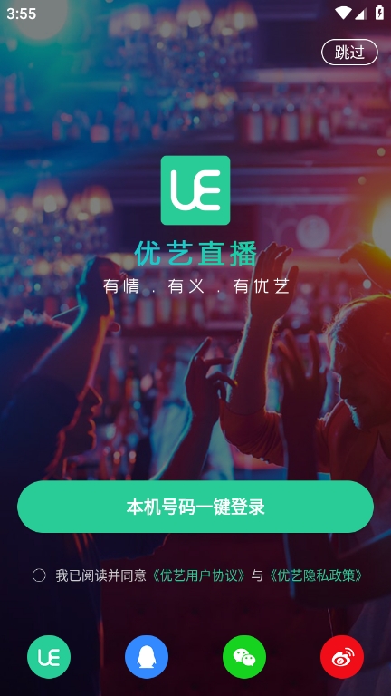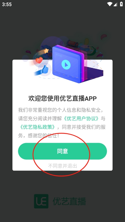 2、首次启动时,请仔细阅读并同意优艺直播的服务协议,以确保顺畅使用各项功能。