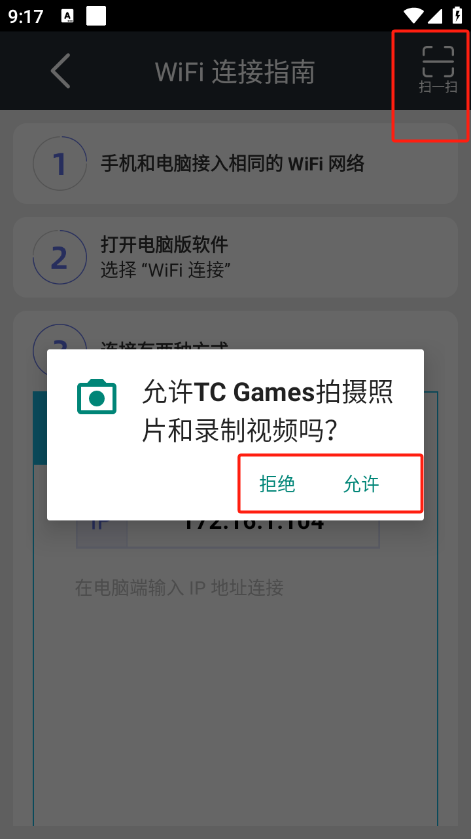 4、点击“扫码连接”,使用手机扫描电脑端显示的二维码,即可快速建立投屏连接。