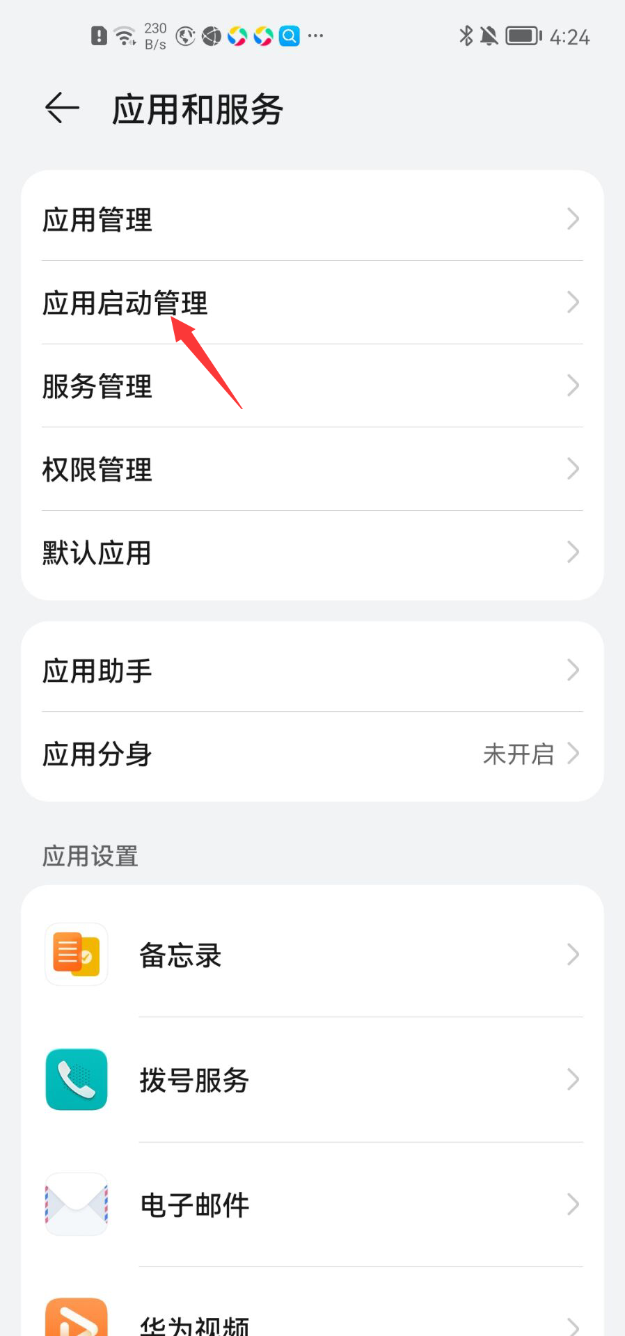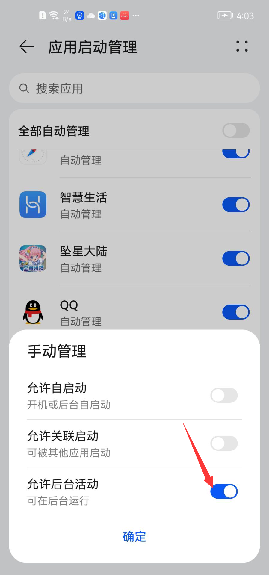 返回设置,进入【应用和服务】→【应用启动管理】,找到x8沙箱,关闭“自动管理”,并手动开启“允许后台活动”;