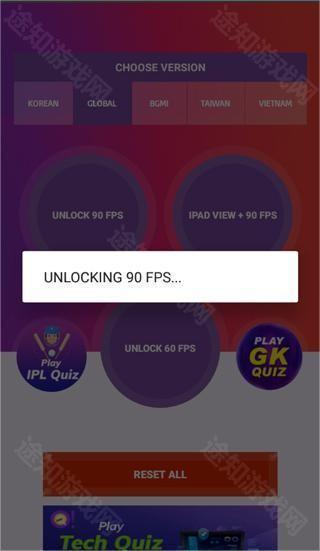 1、打开软件,选择全局模式GLOBAL,再点击解锁90帧模式;