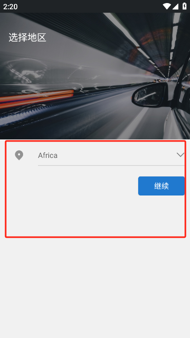 1、下载并安装本应用后,打开app,首先需设置所在地区。点击界面中红色箭头所指区域进行选择。