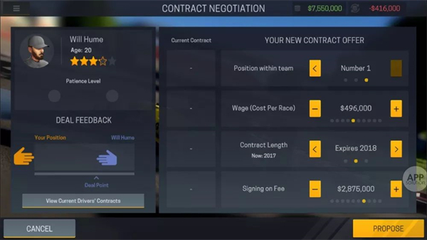 车手与工程师的签约机制极具策略性:你可随时解约或重签,但所有操作均需支付费用。谈判时需平衡合同期限、签约金与单场酬劳,确保既满足车手预期,又不超出车队财务承受范围。