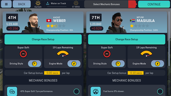 车手同样是决定成败的关键变量。作为经理,你需根据其期望拟定双方认可的合约。签约后,车手通过比赛积累技能点,提升六项核心能力——数值越高,赛场表现越出色。