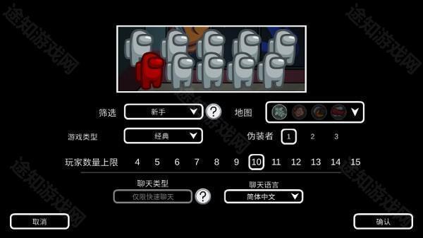 创建房间时可自定义地图、内鬼数量(1–3名)、玩家总数(4–15人)等关键参数。