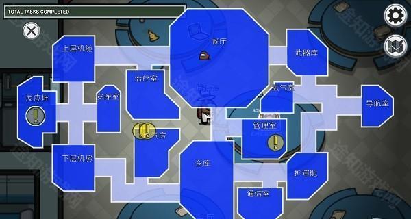 屏幕中央为你的角色。若为船员,左上角显示当前可执行任务,完成所有任务即可获胜。