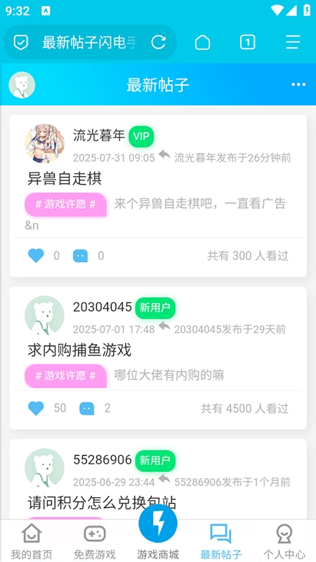 4. 进入“最新帖子”板块,可发布自己的游戏心得、攻略或趣闻,也能参与“玩家分享”“聊天交友”等话题,与其他用户实时互动。