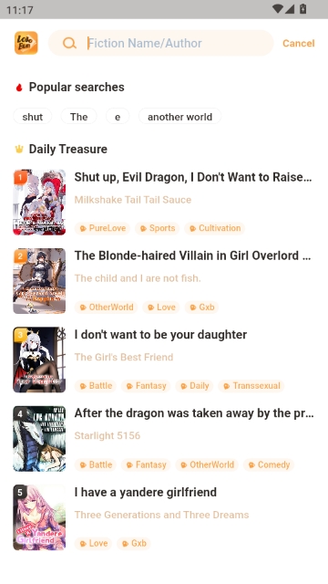 2. 点击顶部搜索栏,输入小说名称或作者名进行查找;也可关注“每日宝藏”栏目,发现高人气新作。