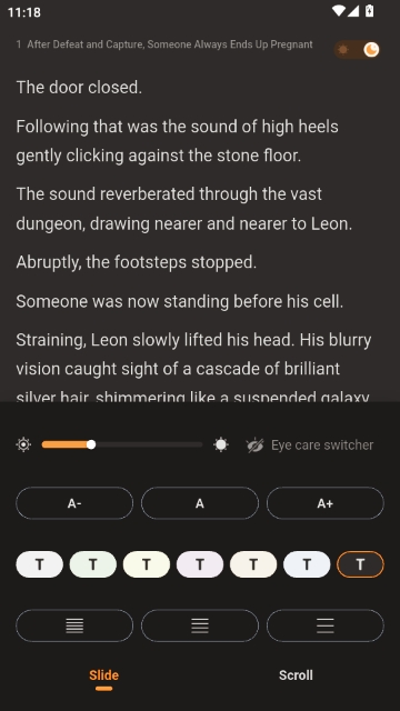 4. 点击“Read Now”开始阅读,进入阅读界面后可自由调整字体大小、背景颜色及翻页模式(滑动或滚动)。