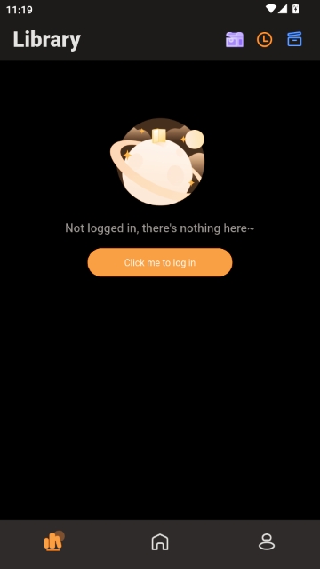 7. 点击个人中心图标进入账户页面,若未登录将显示“未登录,此处为空”,需点击登录按钮完成身份验证。
