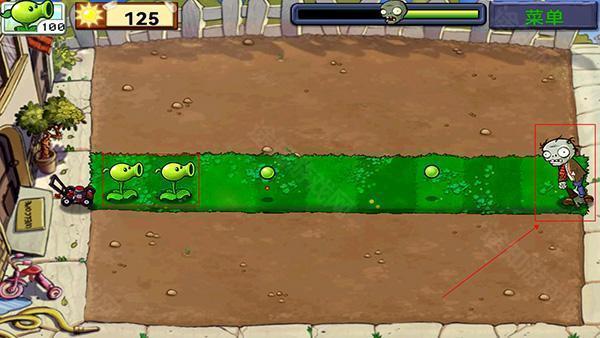 4、当僵尸逼近时,豌豆射手会自动攻击,目标是阻止任何僵尸进入房屋;