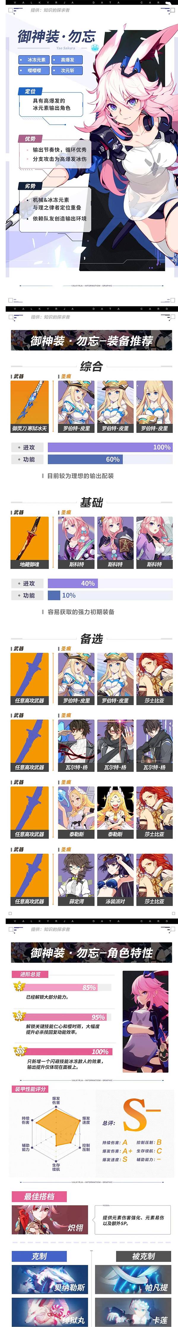 勿忘在特定关卡中表现亮眼,但极度依赖超限武器与SS解锁的动能回复机制。由于灵魂觉醒角色升SS需大量碎片,非忠实粉丝不建议优先培养,外观党可酌情保留。