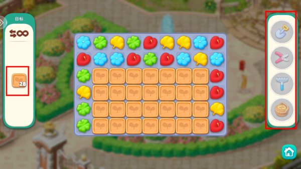 5、左侧显示剩余移动步数与通关条件,右侧陈列可用道具;