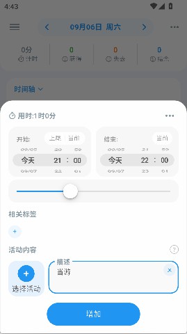 2、添加任务,自定义项目类别的图标,并计划/统计完成任务花多少时间。