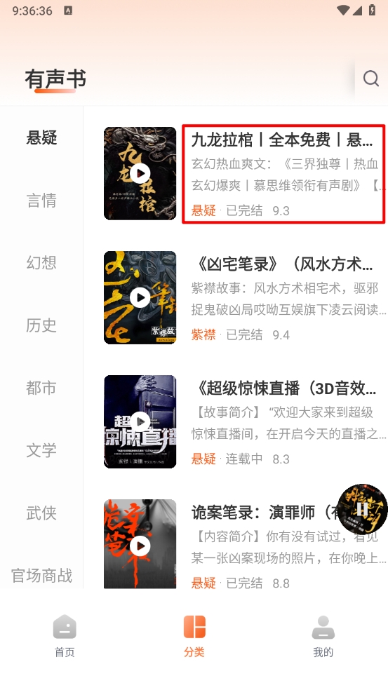 3、在有声书列表中,根据个人兴趣选择喜欢的书籍。