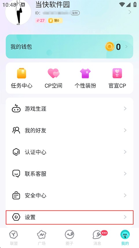 打开进圈APP,进入【我的】页面,点击右上角【设置】;