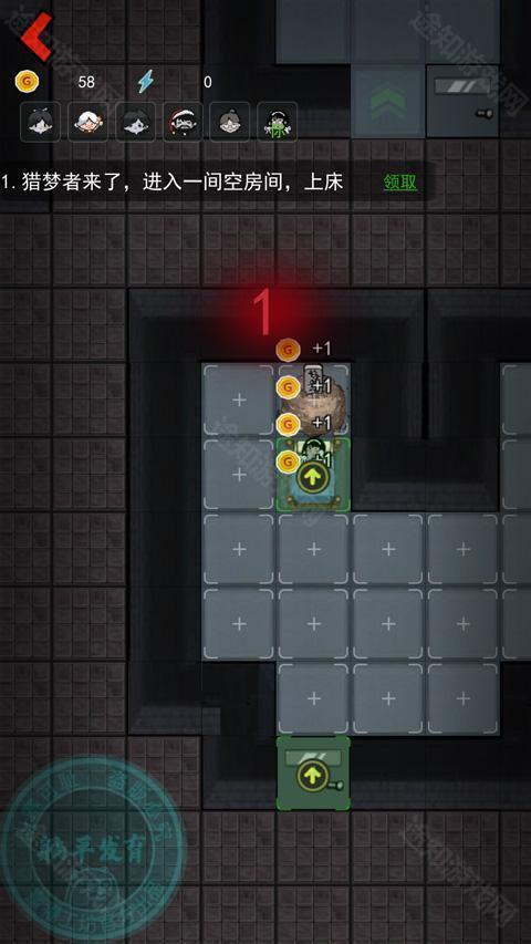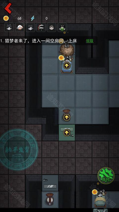 5、倒计时5秒时迅速升级床铺,再升2级门;若猛鬼提前攻击,立即建武器并持续修复门体