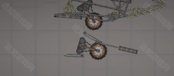 1、首先制作一个简易起落架开合装置:使用轮胎与引擎连接铁块即可完成。该结构同样适用于后起落架。