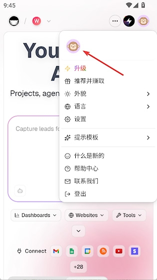 2. 在弹出菜单中再次点击头像进入个人设置页面。