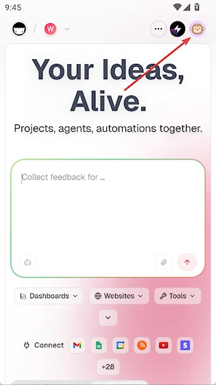 1. 打开应用,点击右上角头像图标。