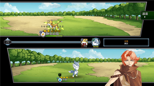 游戏整体框架借鉴《猎人岛》风格:采用团队回合制战斗,技能释放后按冷却时间排入行动队列;怪兽通过野外遭遇捕获,极稀有品种需通过蛋池抽取;战斗结束后返回营地可自动恢复血量。