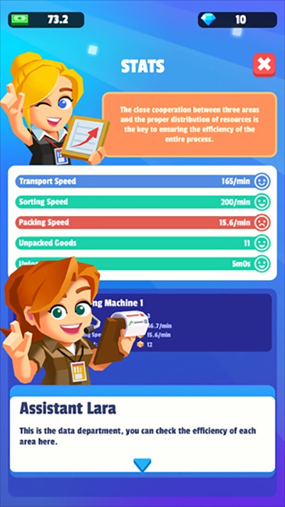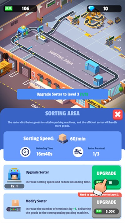 通过提升角色技能,解锁高效分拣机、自动打包机等专业设备,显著提升货物处理速度与准确率,为后续规模化运营打下基础。