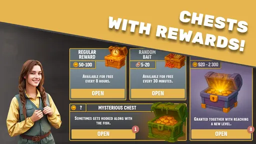 3.通过不断垂钓解锁鱼类图鉴,不仅能收获知识,还能赢取丰厚奖励;不同区域栖息着各具特色的鱼类,增添收集乐趣。