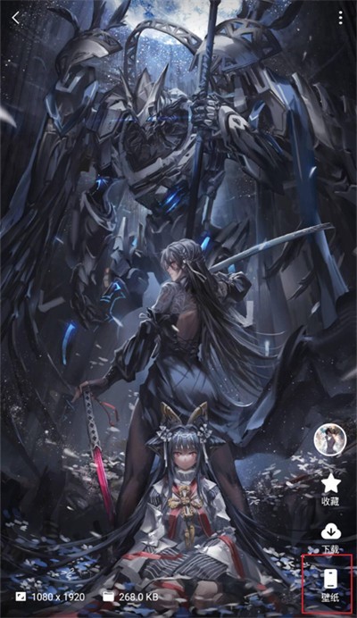 2、进入该壁纸的详情页面后,点击界面右下角的【壁纸】按钮。