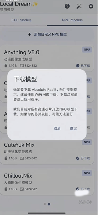 将你拥有的 .safetensors 或 .ckpt 格式模型文件放入手机存储中的 LocalDream/models 文件夹。