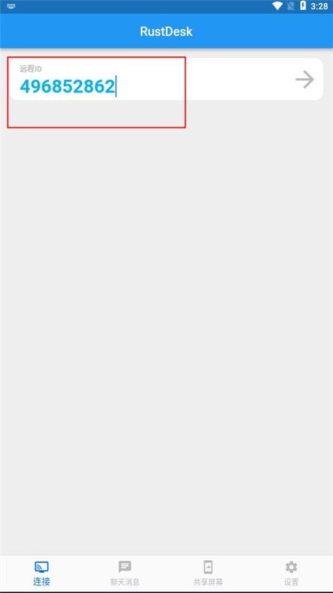 3、点击远程ID栏右侧的箭头开始连接,输入访问密码,密码可在pc端查看。