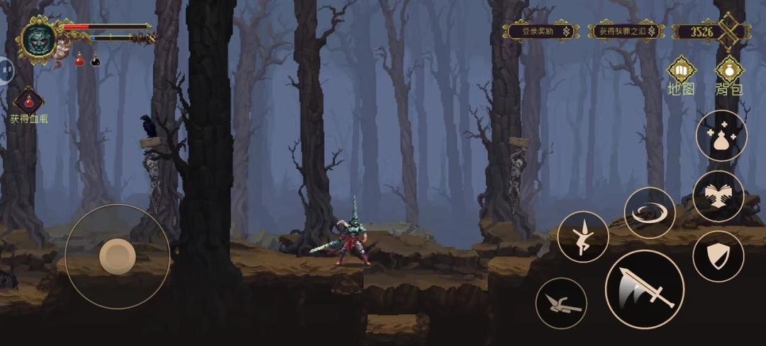 5、隐藏道路探索:游戏中多处地面覆盖矮小荆棘,使用“遗村歌”技能下砸可开启隐藏通路。例如初期区域可获得“水银”,提升血瓶回复量;稍后位置则可取得剧情道具“学童道海森的锁骨”。